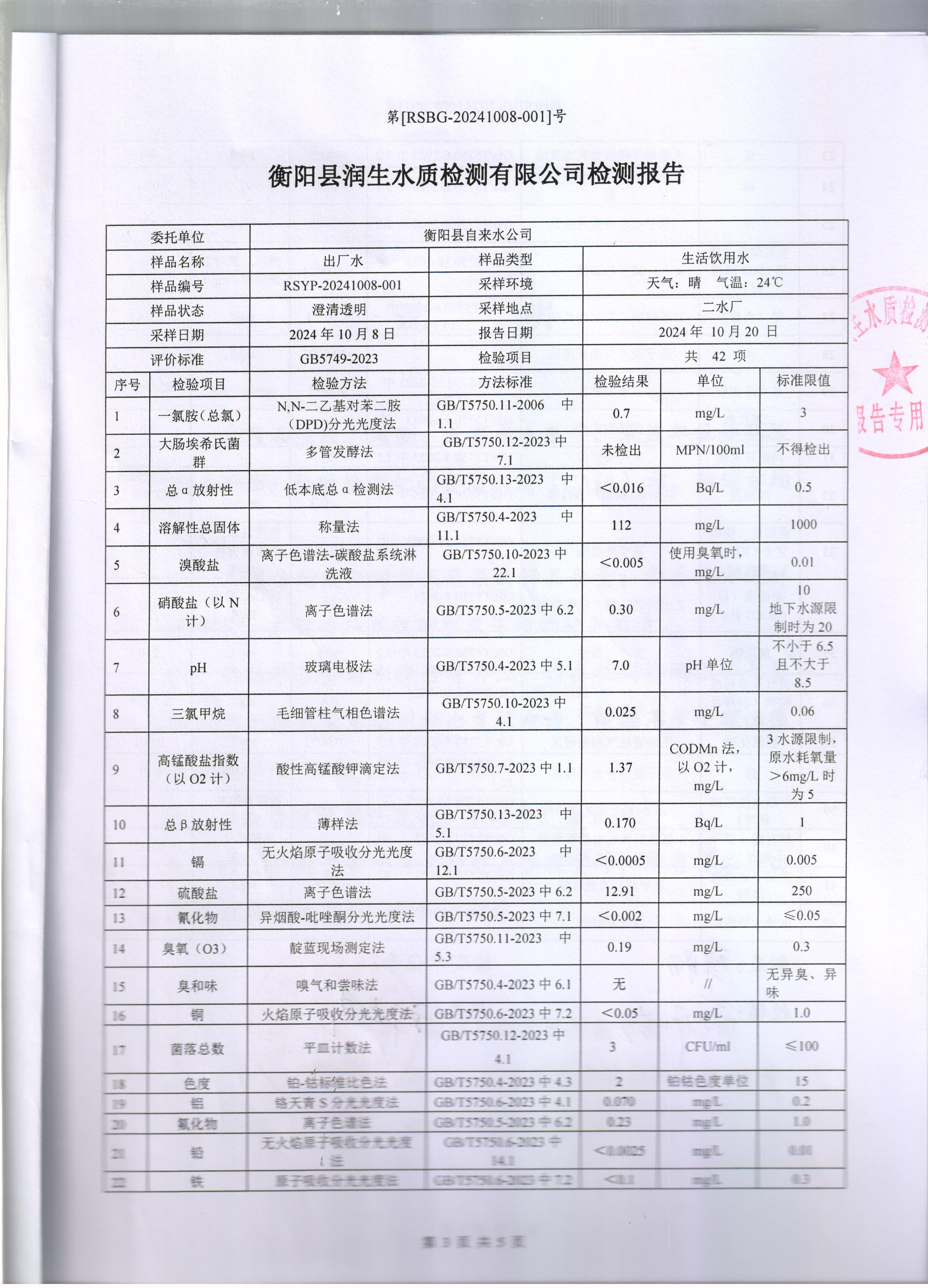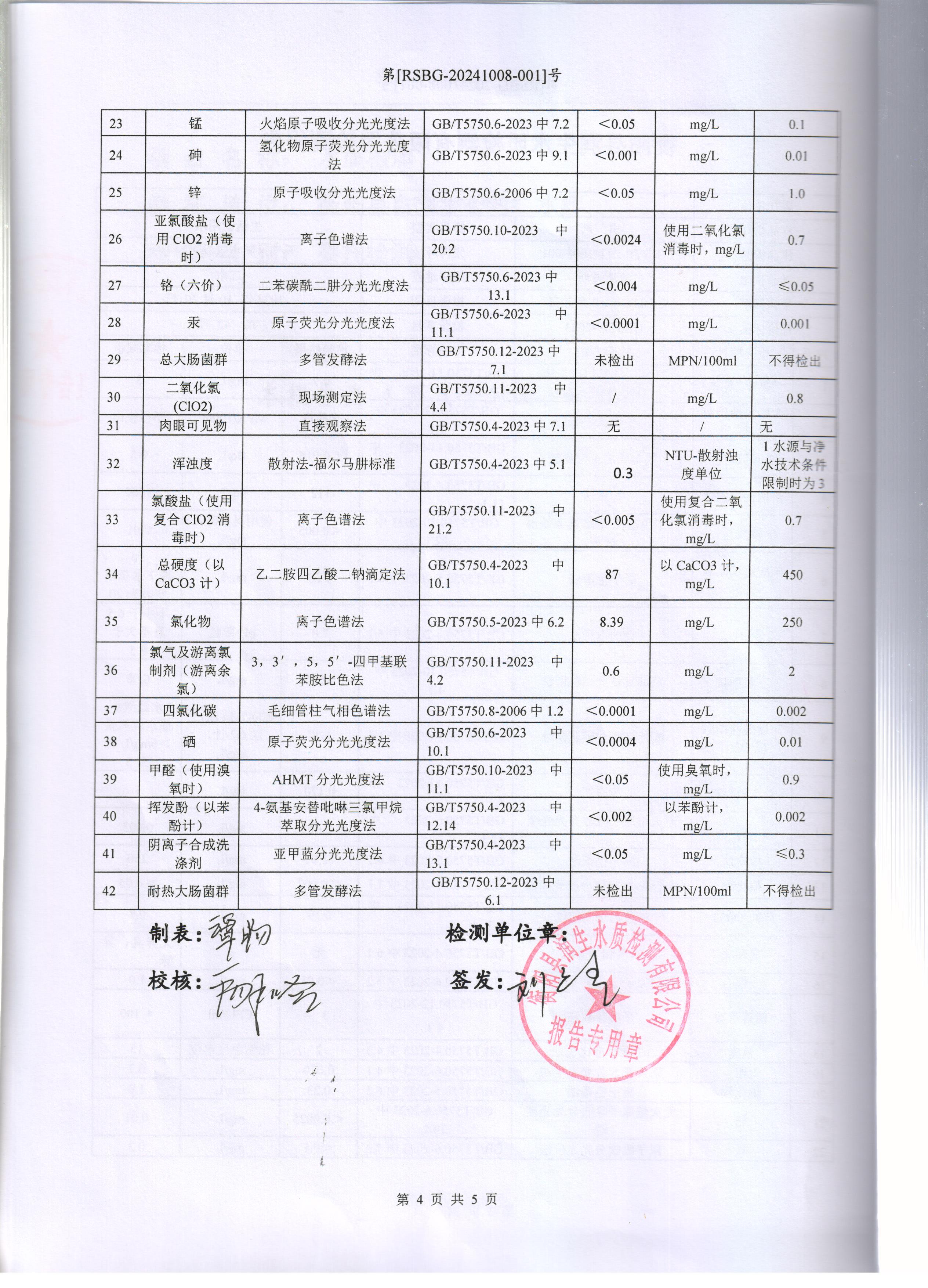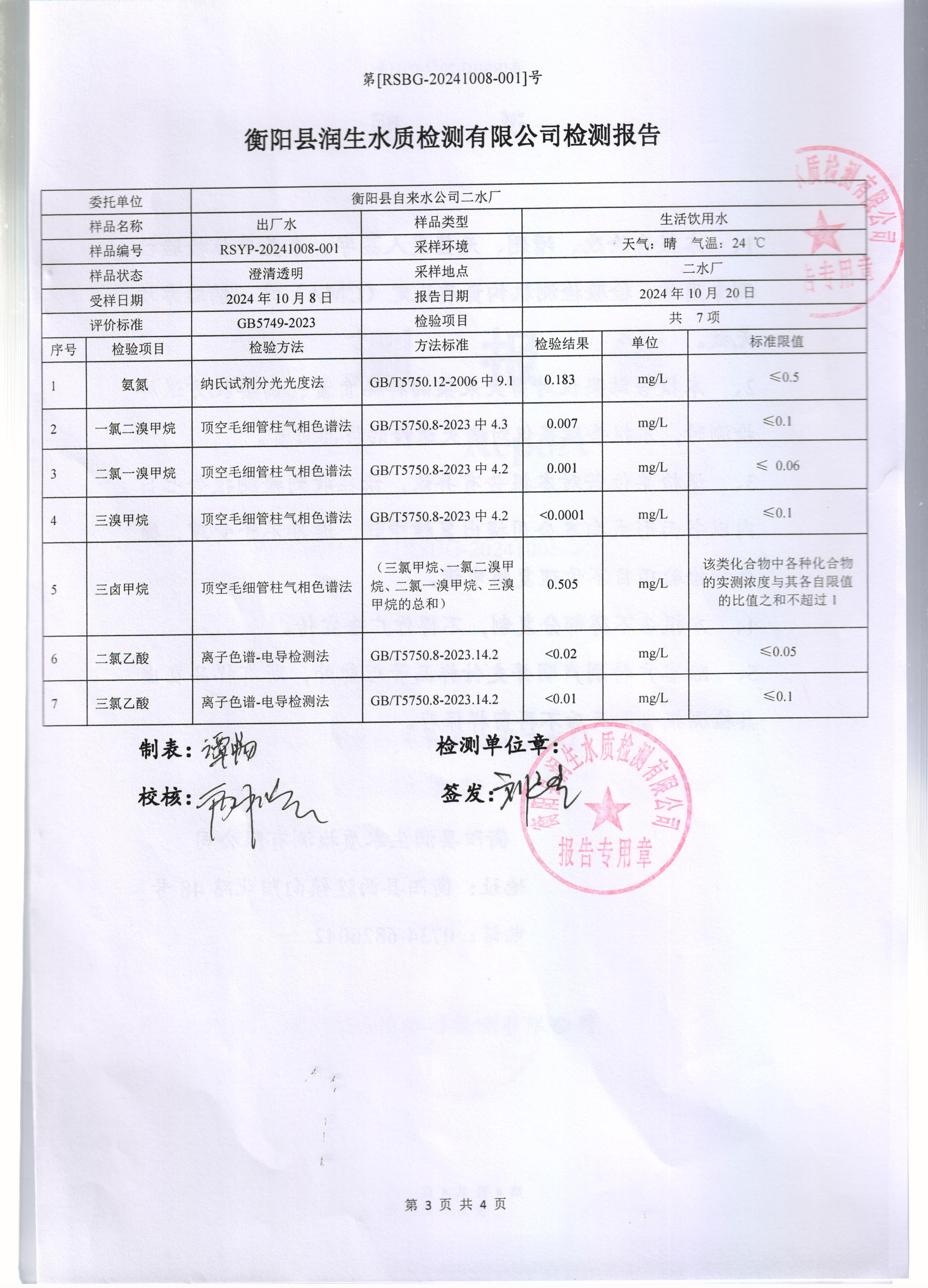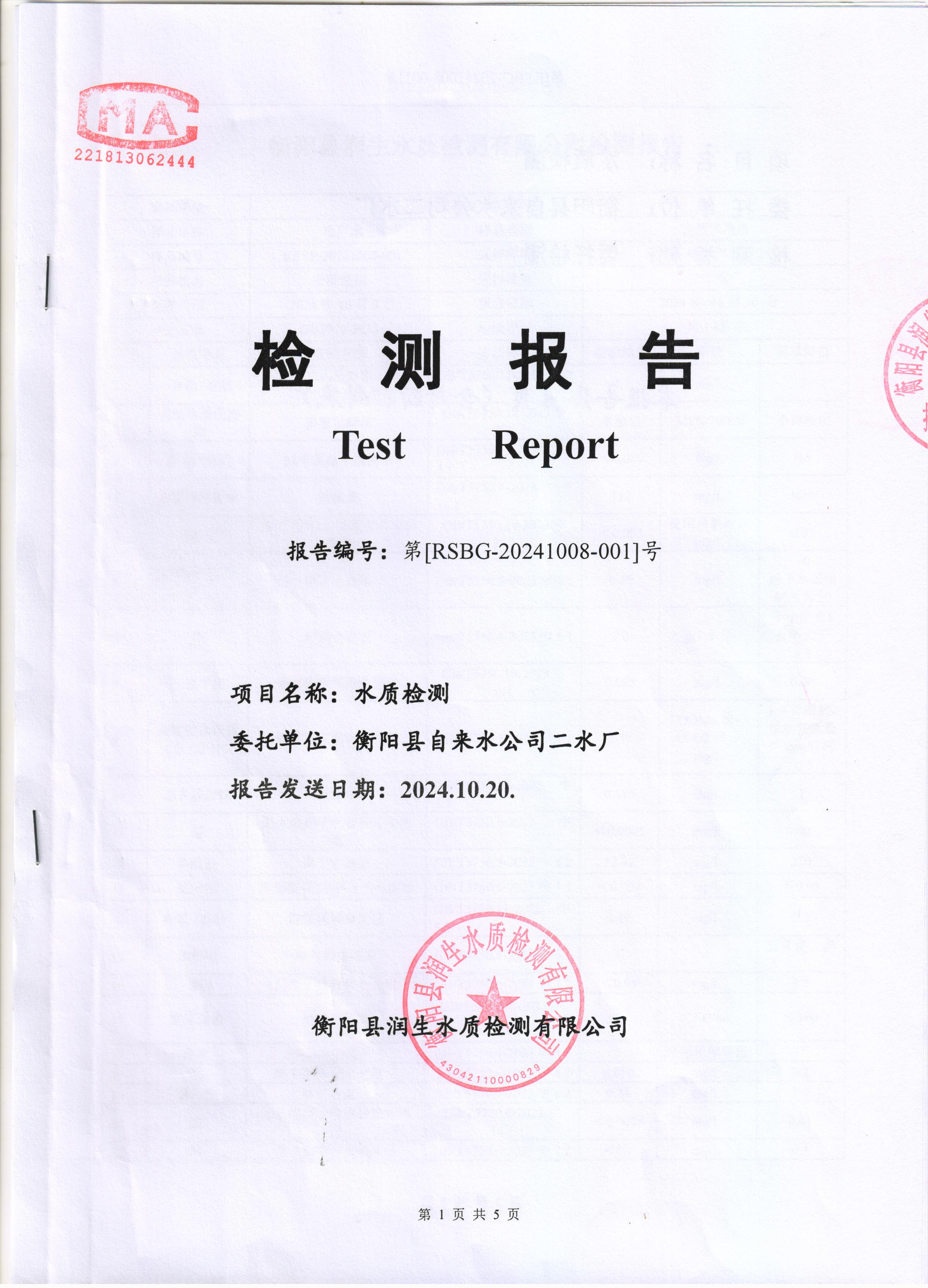 2024年10月份水質(zhì)報告