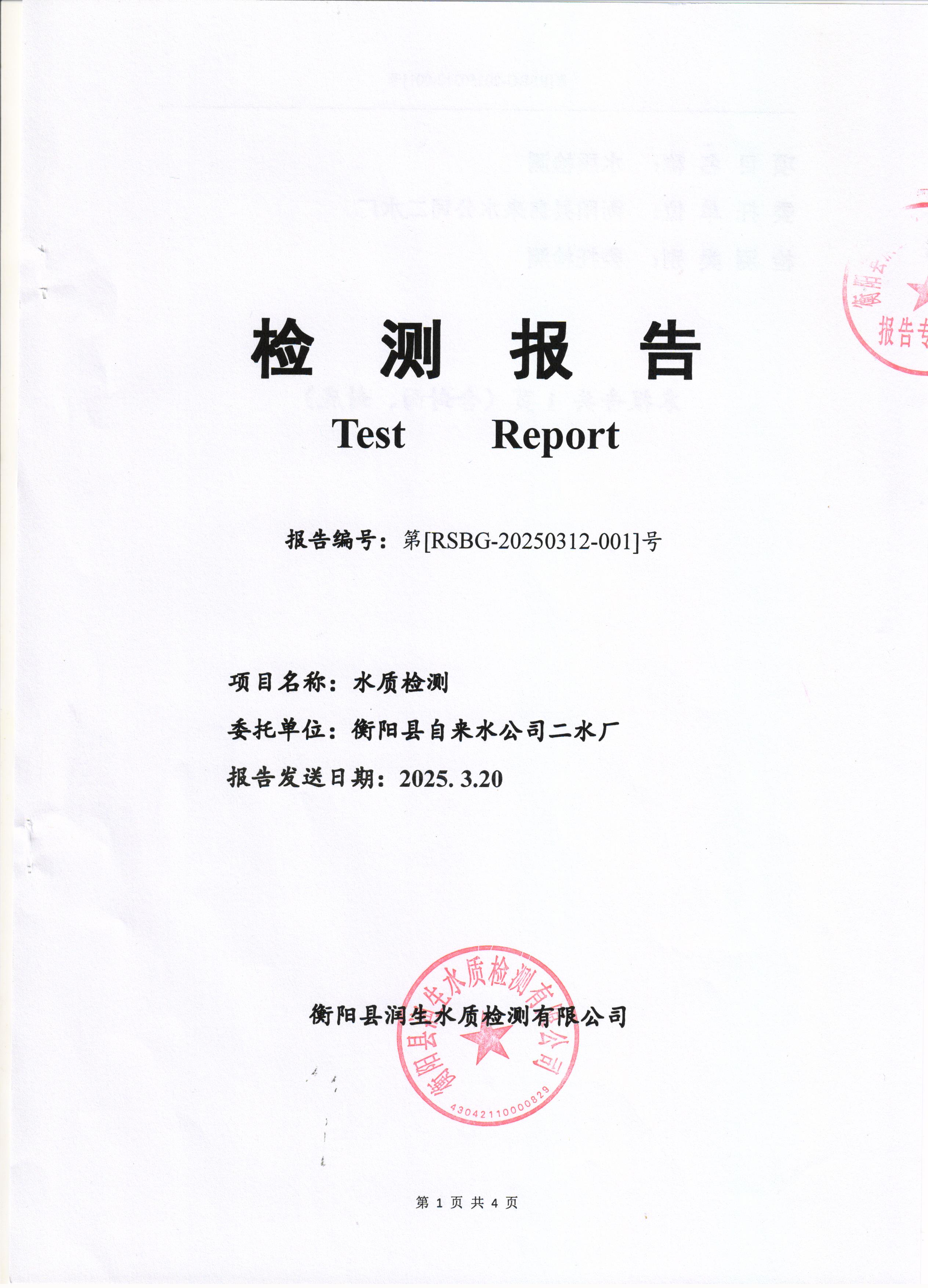 2025年3月份水質(zhì)報(bào)告