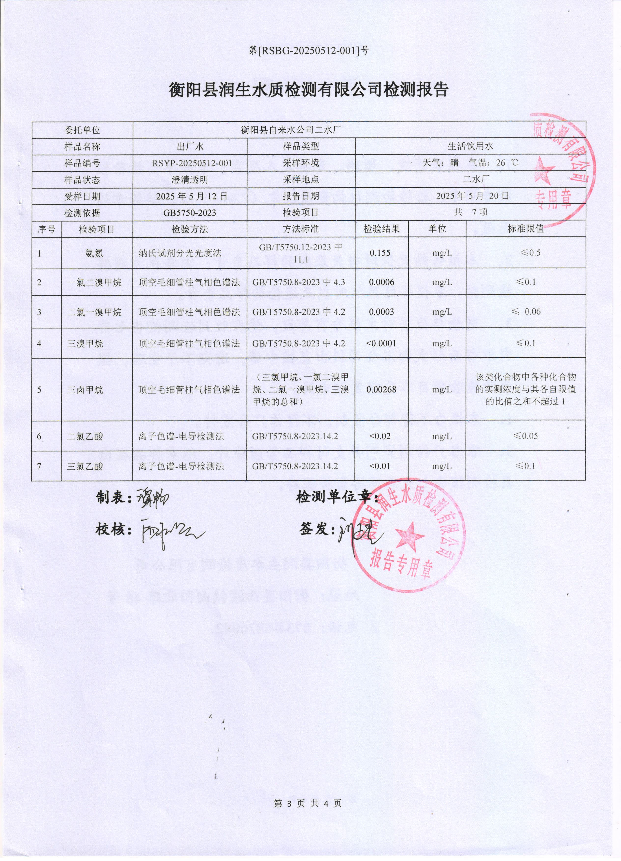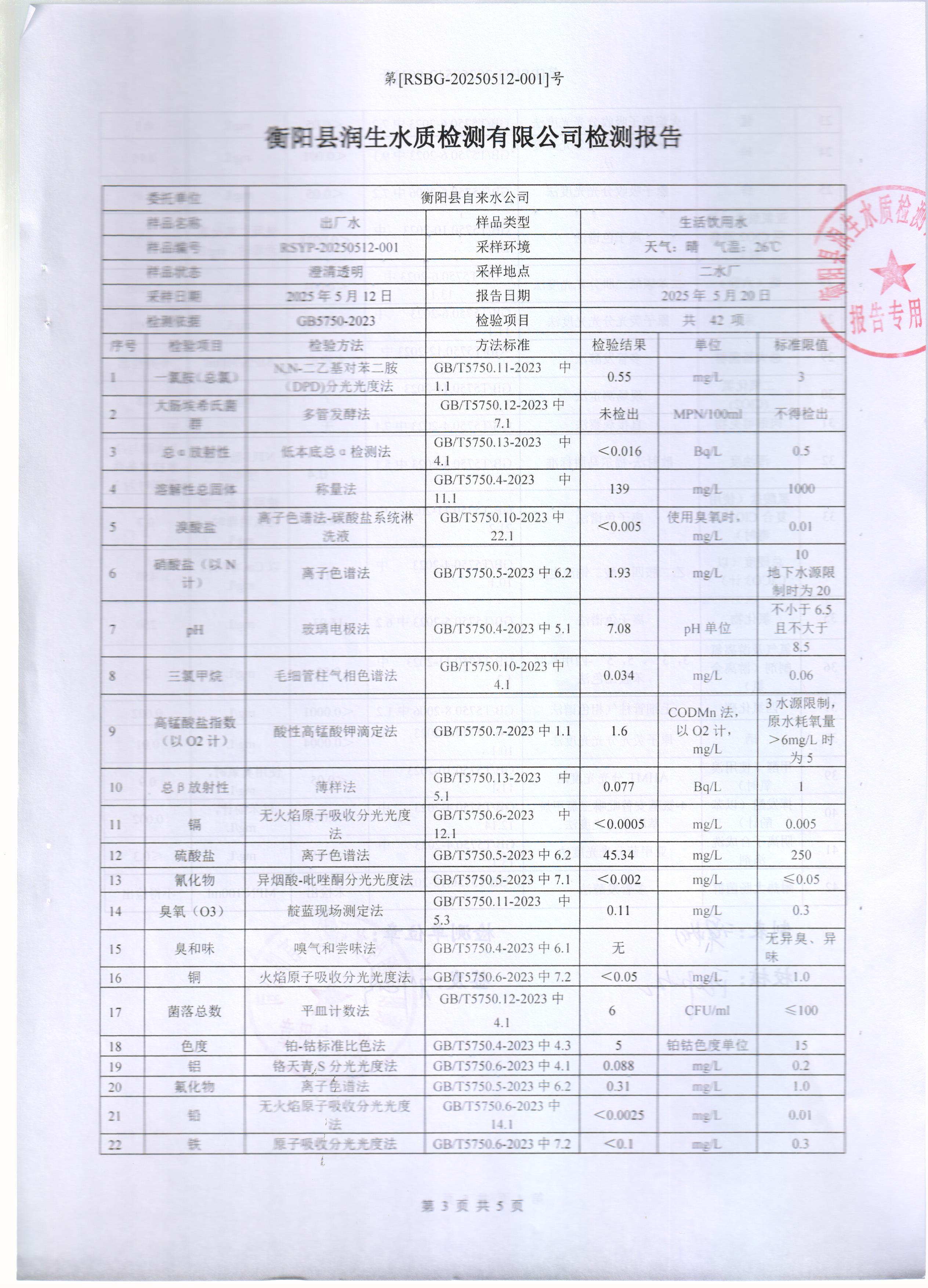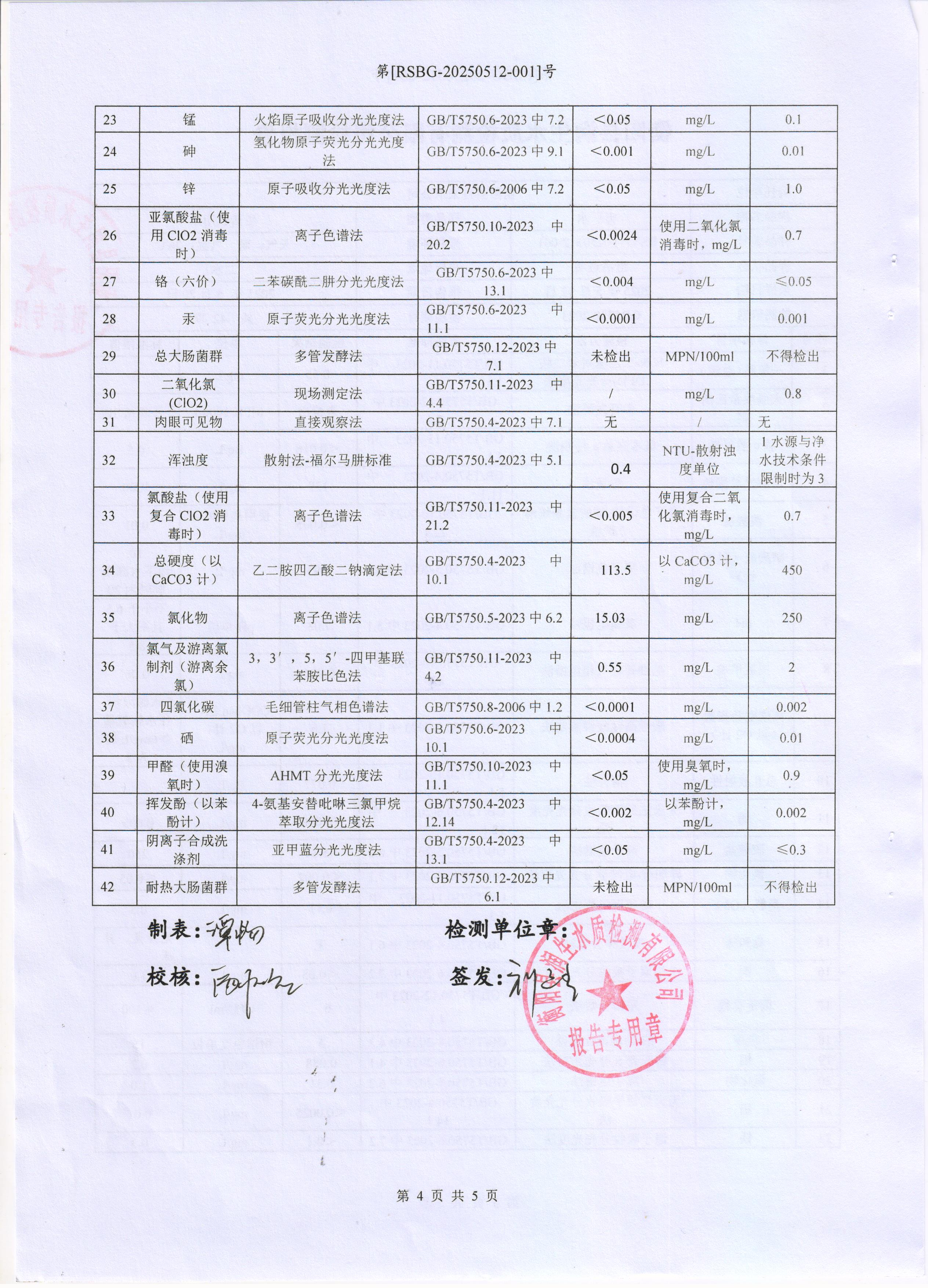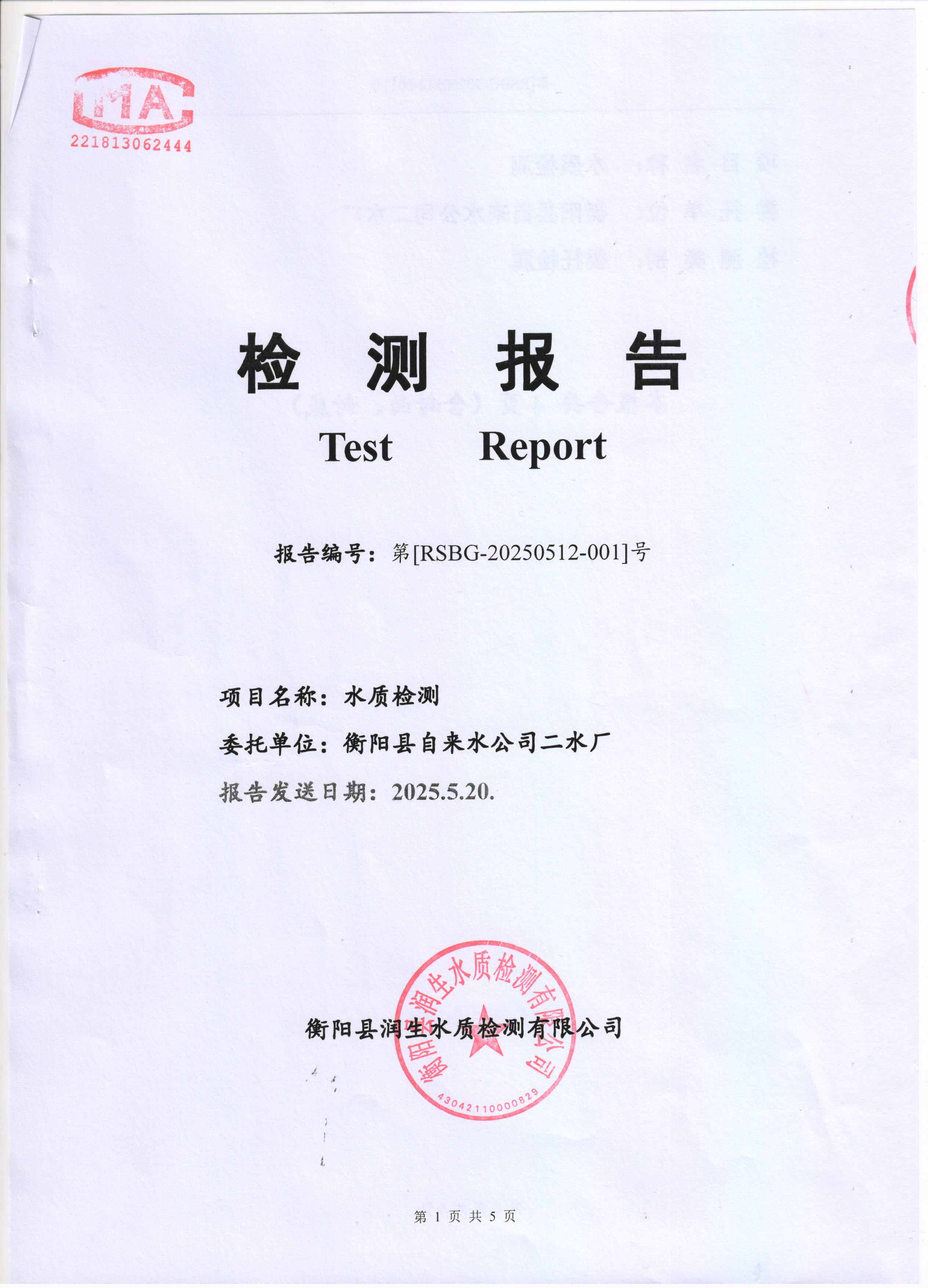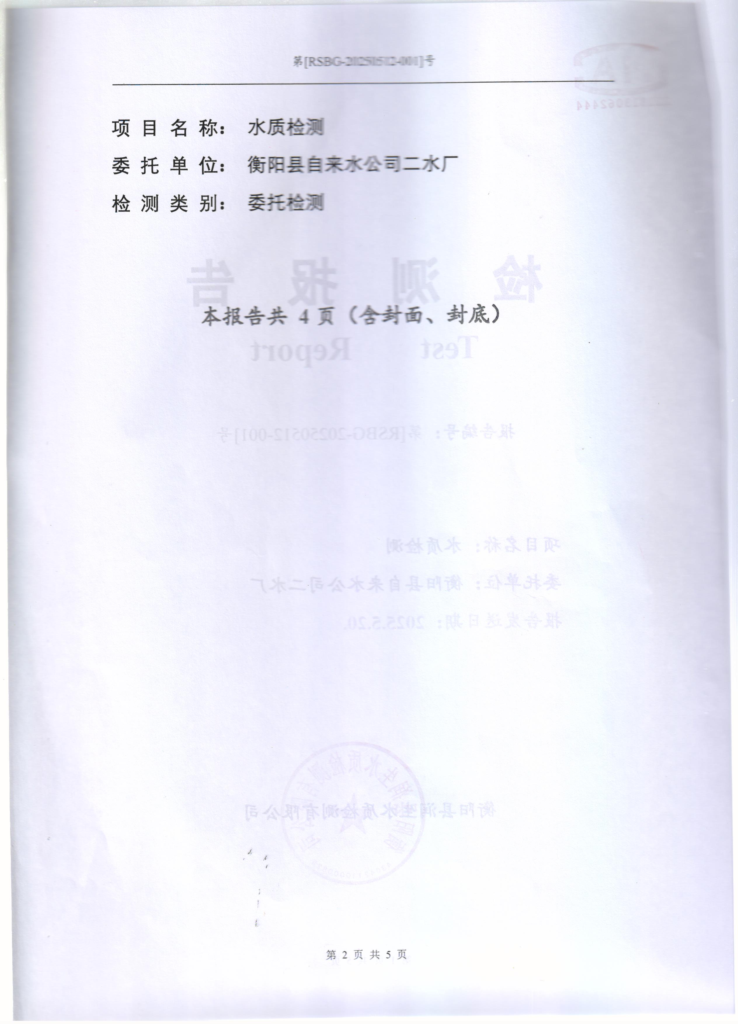 2025年5月份水質(zhì)報告