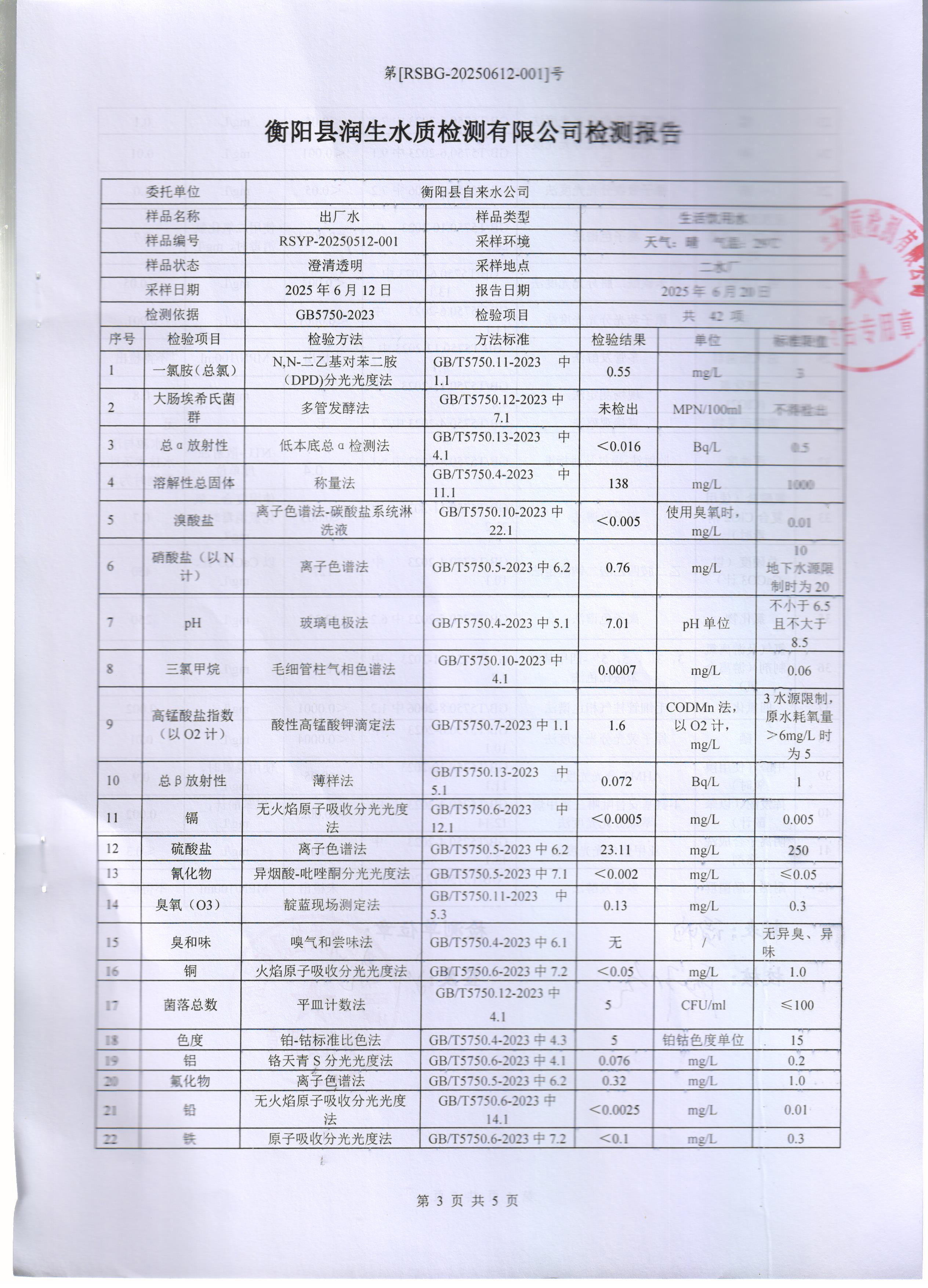 2025年6月份水質報告